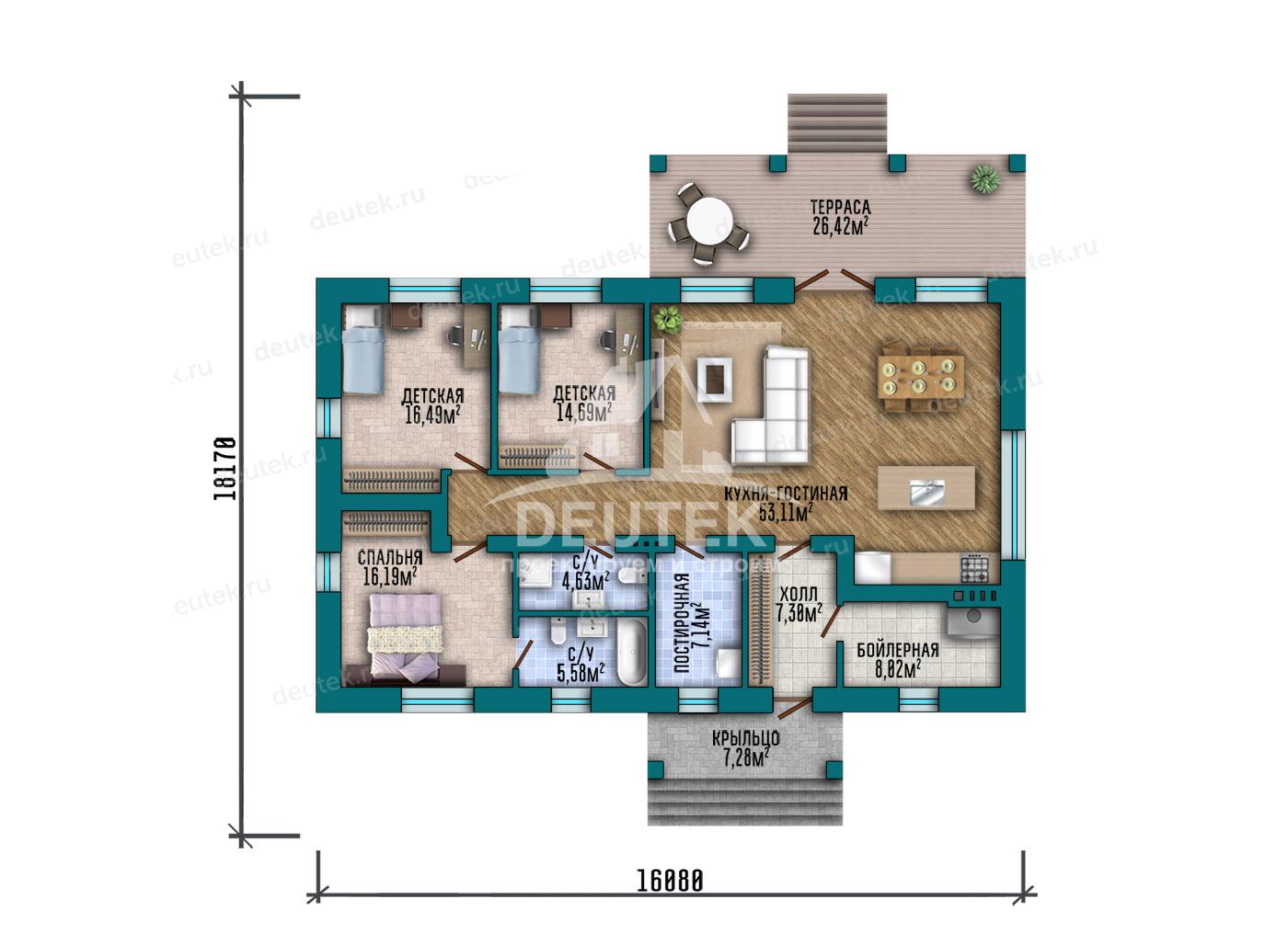 | Габариты дома: | 16.08 x 18.17 м |
