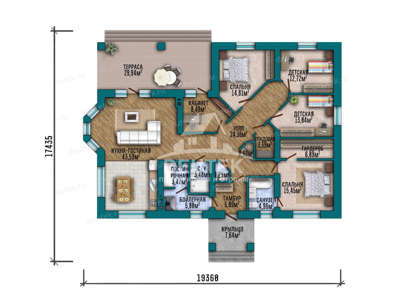 | Габариты дома: | 19.36 x 17.43 м |