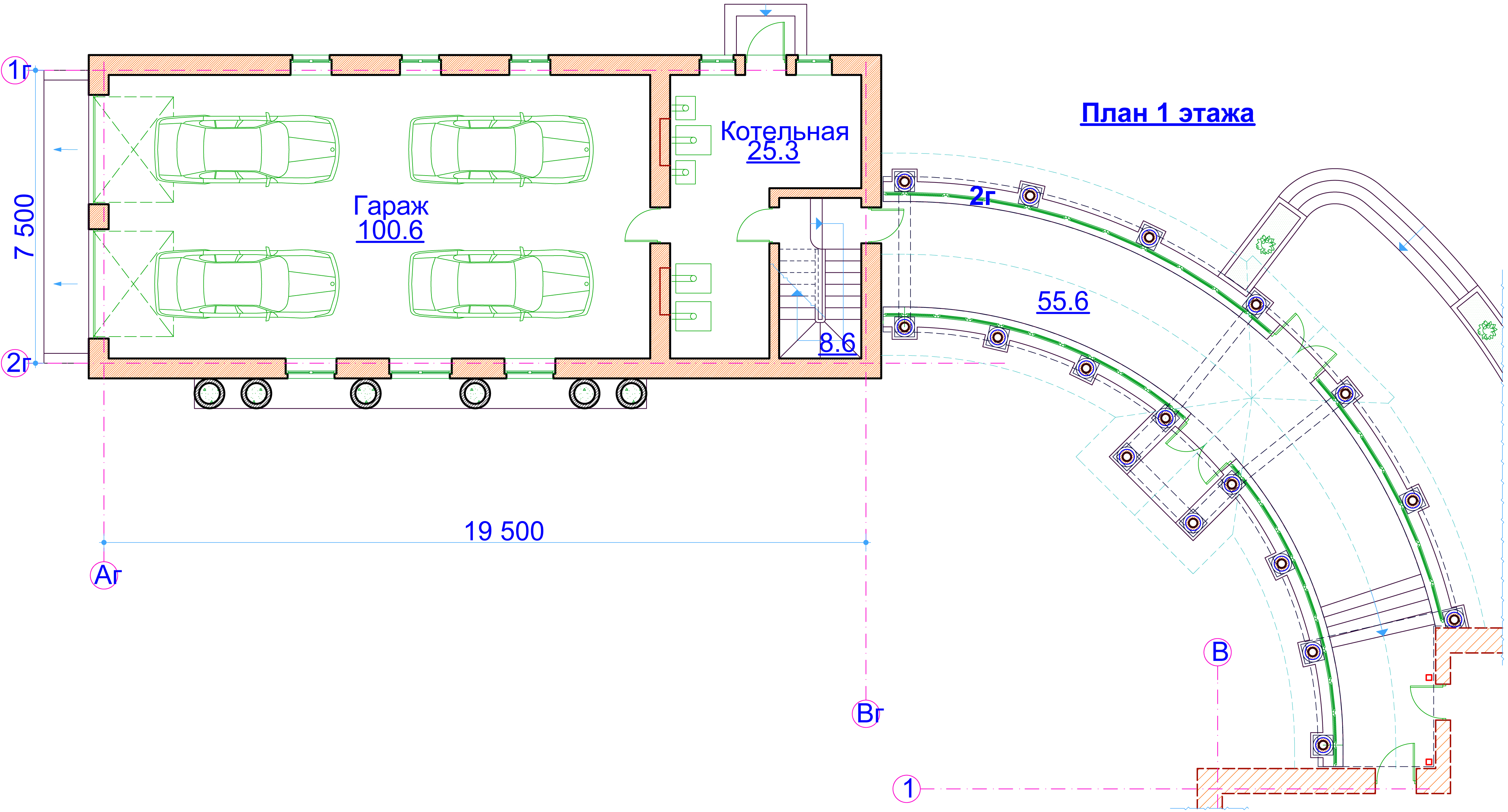 | Фундамент: | буро-набивные сваи |